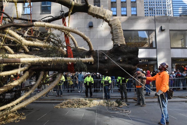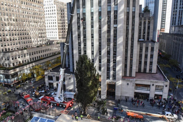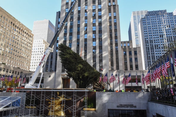 The massive holiday tree will be adorned with more than 50,000 lights and topped with a Swarovski star before it’s lighted on Nov. 29. It will continue to shine in the famed plaza until Jan. 7.