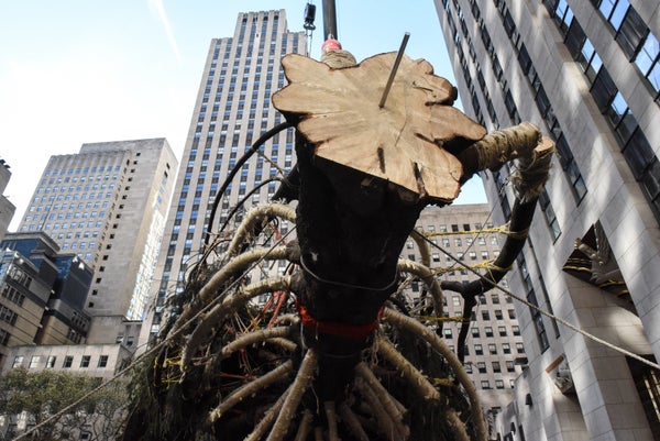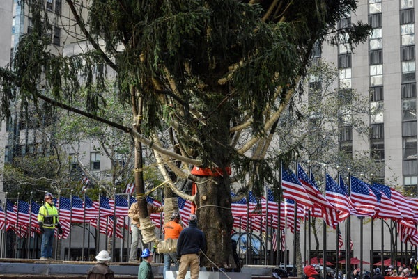 A 75-foot Norway spruce arrived in the Big Apple on Saturday to grace the plaza this holiday season. The installation caps an estimated 240-mile journey from State College, Pennsylvania, where the tree was cut down.