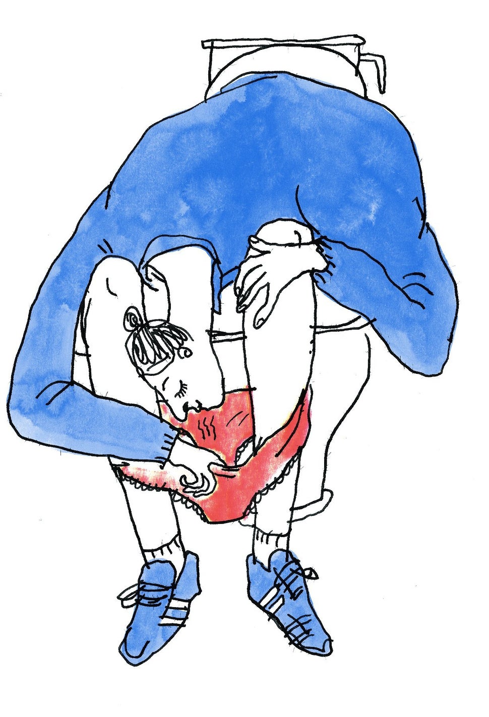In the final book, juicy stories like this come to life thanks to Pomeroy’s illustrations, gangly line drawings splashed with watercolor that make a woman shitting herself look vaguely cool. Like the book’s language, its images do not attempt to sugarcoat their subject matter. Pomeroy draws clearly the most deliciously vile of moments ― poop emerging from a butt, discharge soaking panties, pus oozing from a zit.