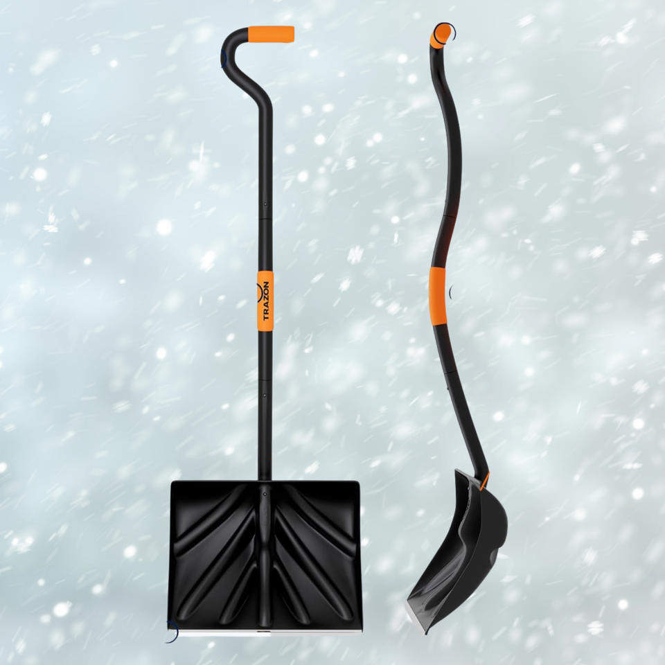 A “back-friendly” basic snow shovel with an ergonomic design