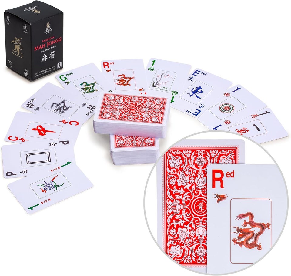 This 178-card set can be used to play either American or Chinese mahjong. It lacks extras like dice and chips, and also doesn’t include instructions, so you may have to do a little research on your own, but it can help familiarize you with the different tiles and types of hands.